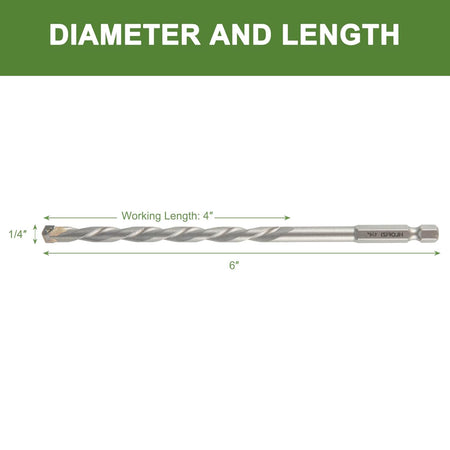 - Masonry Drill Bits - 1/4" x 4" x 6" concrete drill bit, 25 Pack, with 1/4" Hex shank type