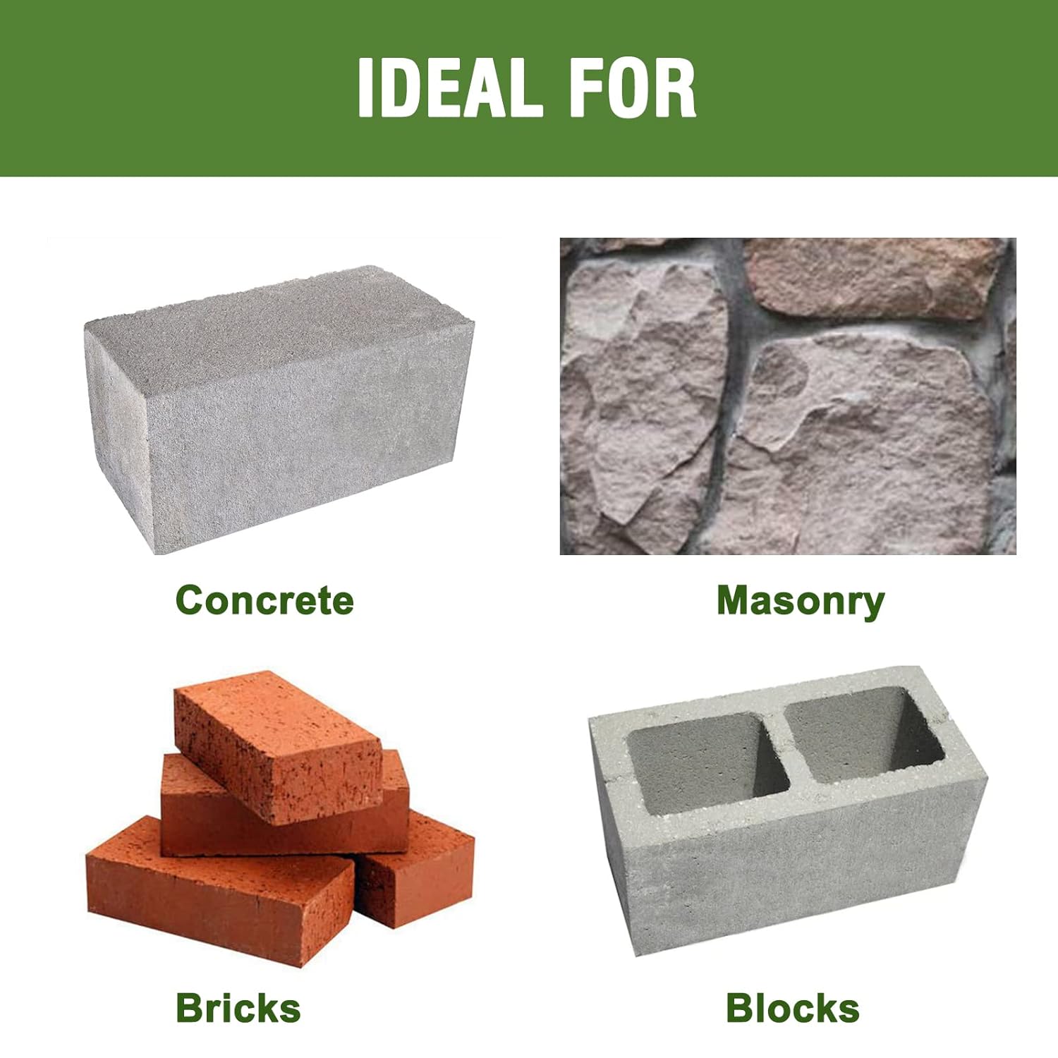 - Longer Life - 1/4" masonry drill bit with premium head tungsten carbide tips, for up to 5x longer life in concrete, brick, cement, stone, rock, cinder block and other masonry material