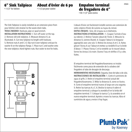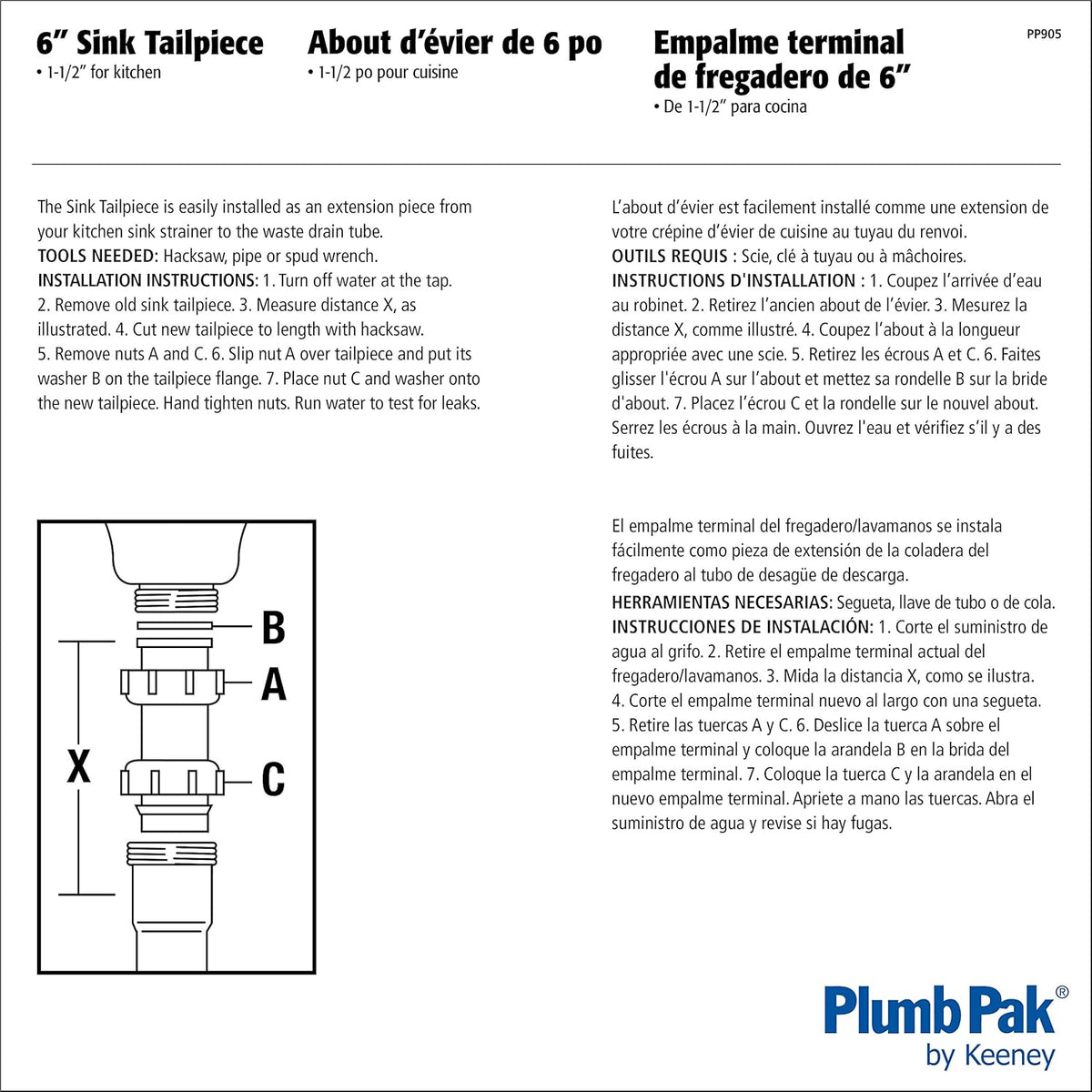 Plumb Pak PP905W Sink Tailpiece, 1-1/2 In Dia X 6 In L, Flanged, Pvc, No Size, White